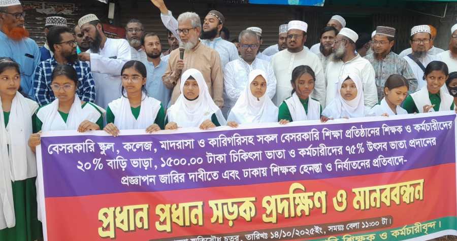 সকাল থেকেই বিভিন্ন স্কুল, কলেজ, মাদরাসা ও কারিগরী প্রতিষ্ঠানের শিক্ষক ও কর্মচারীরা এই মানববন্ধনে অংশ নেন। তারা ২০% বাড়ি ভাড়া, ১৫শত টাকা চিকিৎসা ভাতা ও কর্মচারীদের জন্য ৭৫% উৎসব ভাতা প্রদানের জন্য দ্রুত প্রজ্ঞাপন জারির দাবি জানায়। পাশাপাশি, ঢাকায় শিক্ষকদের হেনস্তা ও নির্যাতনের ঘটনার নিন্দা জানিয়ে দোষীদের দৃষ্টান্তমূলক শাস্তির দাবি তোলে।