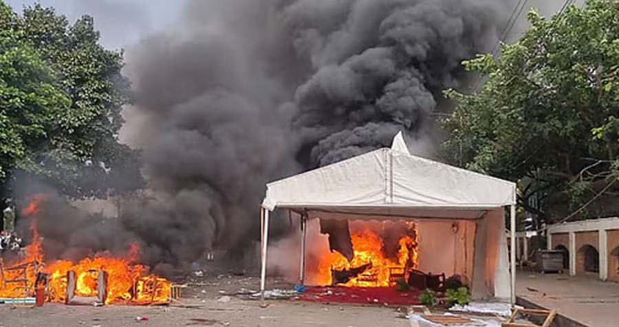 জাতীয় সংসদ ভবনের দক্ষিণ প্লাজায় অনুষ্ঠিত হয় ‘জুলাই জাতীয় সনদ-২০২৫’ স্বাক্ষর অনুষ্ঠানের নেপথ্যে এক উত্তেজনাপূর্ণ পরিস্থিতির সৃষ্টি হয়। অনুষ্ঠানস্থলের সামনে ‘জুলাই যোদ্ধাদের’ অবস্থান নিতে দেখা গেছে বলে জানায় নিরাপত্তা বাহিনী। তাদের এই প্রতিবাদকে কেন্দ্র করে পুলিশের সাথে তাদের সংঘর্ষ শুরু হয়। ক্ষুব্ধ ‘জুলাই যোদ্ধারা’ সংসদ ভবনের চারপাশে অবস্থান নেওয়ার পরে পুলিশ তাদের সরিয়ে দিতে গেলে, পরিস্থিতির অবনতি ঘটে। তখন তারা পুলিশের গাড়িগুলো ট্রাক ও বাসসহ বেশ কিছু যানবাহন ভাঙচুর করে এবং আগুন লাগানোর চেষ্টা করে। পুলিশ পরিস্থিতি নিয়ন্ত্রণে আনতে টিয়ারশেল নিক্ষেপ করে এবং ধাওয়া চালায়। এই সংঘর্ষ শুক্রবার (১৭ অক্টোবর) দুপুর সোয়া একটার দিকে ঘটে। এ ঘটনার আগে, বৃহস্পতিবার (১৬ অক্টোবর) রাতে, বিক্ষোভকারীরা সংসদ ভবন এলাকার ১২ নম্বর গেটের সামনে অবস্থান নিয়ে স্লোগান দিতে থাকেন। কিছু সময় পর তারা গেট টপকিয়ে ভিতরে প্রবেশ করে, সেখানে অতিথিদের চেয়ারে বসে ভিন্নধারার স্লোগান দিতে থাকেন। জানা গেছে, এইদিন বিকেলে ঐতিহাসিক ‘জুলাই জাতীয় সনদ-২০২৫’ স্বাক্ষর অনুষ্ঠানের আয়োজন করা হয়, যেখানে প্রধান উপদেষ্টা ড. মুহাম্মদ ইউনূস উপস্থিত ছিলেন। পরিস্থিতির সুস্থতা ফিরিয়ে আনতে পুলিশ দ্রুতই পদক্ষেপ গ্রহণ করে।