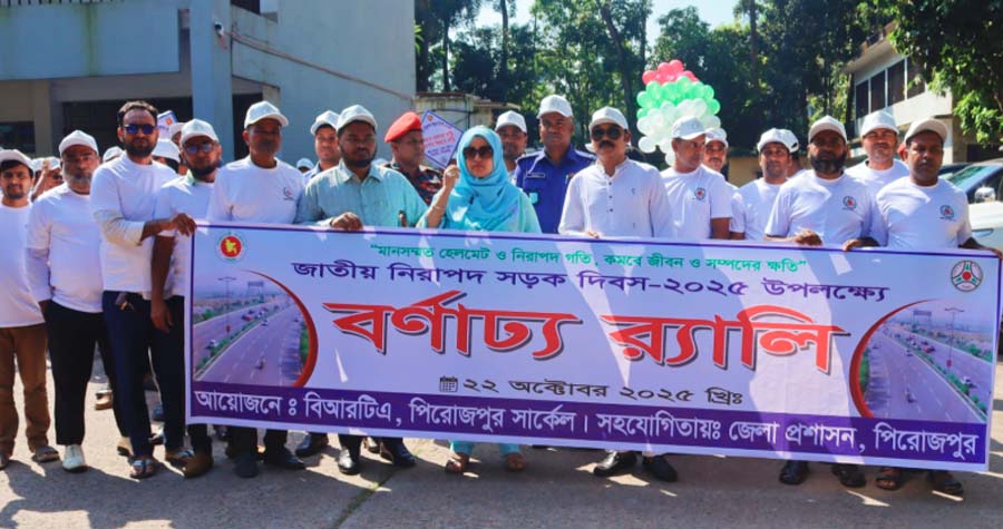 পিরোজপুরে যথাযোগ্য মর্যাদা ও নানা আয়োজনে পালিত হয়েছে ৯ম জাতীয় নিরাপদ সড়ক দিবস। এই দিবসের প্রতিপাদ্য ছিল, “মানসম্মত হেলমেট ও নিরাপদ গতি, জীবন ও সম্পদের ক্ষতি কমাবে”। বুধবার (২২ অক্টোবর) সকালে জেলা প্রশাসনের উদ্যোগে এক বর্ণাঢ্য র্যালি ও আলোচনা সভা অনুষ্ঠিত হয়।