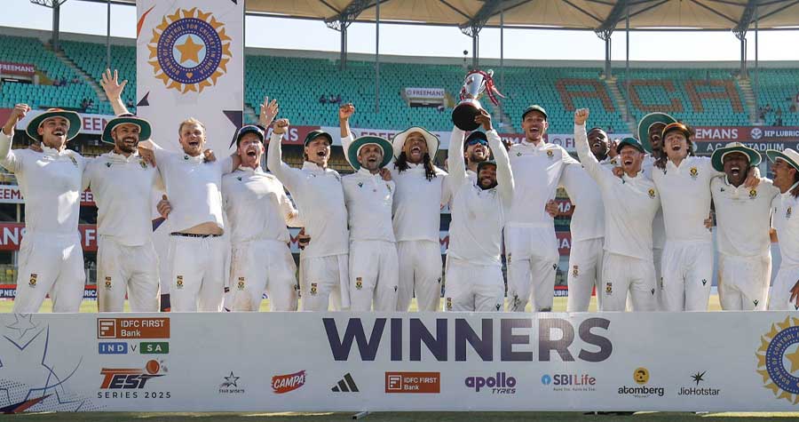 সিরিজের শেষ দিন ভারতের জন্য ছিল কঠিন চ্যালেঞ্জ। ৫৪৯ রানের লক্ষ্য নিয়ে তারা ব্যাট করছিল। প্রথম কয়েক ঘণ্টায় আস্থা রেখে ড্র করার ভাবনা ছিল, তবে দিন শুরুতেই তারা বিপদে পড়ে যায়। খেলা শুরু হয় যখন ভারত ২ উইকেটে ২৭ রান করে, তখনই হয়ে যায় জোড়া ধাক্কা। সিমন হারমার প্রথম সেশনের মাঝামাঝি সময়ে কুলদীপ যাদব ও ধ্রুব জুরেলকে দ্রুত আউট করেন। এরপর ভারপ্রাপ্ত অধিনায়ক ঋশাভ পান্তকেও মাঠ ছাড়া হয়। ভারত ৫৮ রানে ৫ উইকেট হারায়, এমন পরিস্থিতিতে তারা কোণঠাসা হয়ে পড়ে। তবে সাই সুদর্শন ও রবীন্দ্র জাদেজার কঠোর প্রতিরোধ ভারতকে আবার ঘুরে দাঁড়ানোর আশা দেখায়। সুদর্শন ১৩৮ বলে ১৪ রানে অপরাজিত থাকেন, আর জাদেজা ৪০ বলে ২৩ রান নিয়ে টিকে থাকেন। চা-বিরতিতে ফিরে দ্বিতীয় সেশনে, দক্ষিণ আফ্রিকার পঞ্চম বলেই বড় বিপর্যয় ঘটে। সেনুরান মুথুসারামির বলে সুদর্শন ক্যাচ দিয়ে ফিরে যান। ১৩৯ বলে ১৪ রানে তিনি আউট হন। এরপর জাদেজার সঙ্গে ৯৯ বলের জুটি গড়ে ৩৭ রান যোগ করেন। এরপর ওয়াশিংটন সুন্দর ও জাদেজা ম্যাচ বাঁচানোর জন্য লড়ছিলেন। ওয়াশিংটন ৭৭ বলে ৩৫ রান করে মারক্রামের বলে ক্যাচ দিয়ে ফিরে যান, আর তার ক্যাচ নিয়ে বিশ্ব রেকর্ড গড়েন দক্ষিণ আফ্রিকার ফিল্ডার। মারক্রাম এক টেস্টে সর্বোচ্চ ৯ ক্যাচ নিয়ে ইতিহাসে নাম লেখান, যা আগে ছিল আজিঙ্কা রাহানের ২০১৫ সালের রেকর্ড। ওই ক্যাচে মারক্রাম একজন দ্বাদশ খেলোয়াড়ের মতো প্রমাণ দেন। এরপর, পরের ওভারেই নিতিশ রেড্ডি কামিয়ে ফেলেন। জাদেজা ও সিরাজের জোড়া শিকার নিয়ে দলটি শেষ হয়। সিরাজ ৫৪ রানে ২ উইকেট নিয়েছেন, হারমার ২৩ ওভার বল করে ৩৭ রান দিয়ে ছয় উইকেট। এই সিরিজে তিনি সর্বোচ্চ ১৭ উইকেট সংগ্রহ করেন এবং ম্যাচের সেরা খেলোয়াড় হন। অন্যদিকে, জানসেন ব্যাট ও বল—দুই বিভাগেই অসাধারণ পারফরমেন্স করেন। প্রথম ইনিংসে ৯৩ রান করেন এবং ভারতের প্রথম ইনিংসের মধ্যে ৬ উইকেট শিকার করেন। মোট দুই ইনিংসে ছয় উইকেট নিয়ে সিরিজের সেরা খেলোয়াড়ের মর্যাদা অর্জন করেন। এই ঐতিহাসিক জয়ের ফলস্বরূপ, দক্ষিণ আফ্রিকা শুধু সিরিজটি জেতেনি, নতুন এক ইতিহাস সৃষ্টি করেছে।