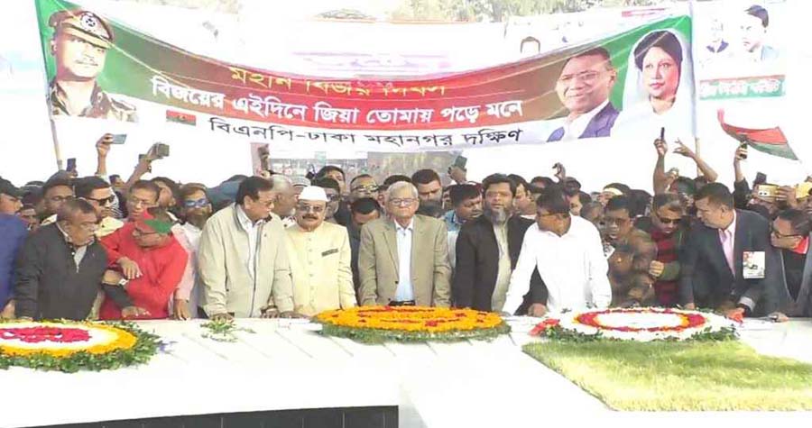 মহান বিজয় দিবসের স্মরণে, বিএনপি নেতাকর্মীরা শহীদ রাষ্ট্রপতি জিয়াউর রহমানের সমাধিতে শ্রদ্ধা নিবেদন করেছেন। মঙ্গলবার (১৬ ডিসেম্বর) সকালে পুষ্পস্তবক অর্পণের মাধ্যমে তাঁদের এই শ্রদ্ধা জানানো হয়, পাশাপাশি দোয়ার আয়োজনও করা হয়। অনুষ্ঠানে বিএনপি মহাসচিব মির্জা ফখরুল ইসলাম আলমগীর, স্থায়ী কমিটির সদস্যরা, দলের শীর্ষনেতা গয়েশ্বর চন্দ্র রায়, ড. মঈন খান, নজরুল ইসলাম খান, সালাহউদ্দিন আহমদ, চেয়ারপারসনের উপদেষ্টা আমান উল্লাহ আমান, আব্দুস সালাম, যুগ্ম মহাসচিব রুহুল কবির রিজভী, খাইরুল কবির খোকন, ঢাকা মহানগর উত্তর ও দক্ষিণ বিএনপির নেতৃবৃন্দ উপস্থিত ছিলেন। এই সময় মির্জা ফখরুল বলেন, স্বাধীনতাবিরোধী শক্তি আবার মাথাচাড়া দিয়ে উঠতে চাচ্ছে, যা দেশের গণতন্ত্রের জন্য হুমকি। তিনি আরো জানান, আগামী ২৫ ডিসেম্বর তারেক রহমান দেশে ফিরে আসবেন এবং গণতান্ত্রিক আন্দোলনে নতুন ধারার সূচনা করবেন। এছাড়া, মহান বিজয় দিবসের প্রথম প্রহরে সাভারে জাতীয় স্মৃতিসৌধে শহীদ মুক্তিযোদ্ধাদের উদ্দেশ্যে পুষ্পস্তবক অর্পণ করা হয়। বিকালে, সূর্যোদয়ের শুরুতেই রাষ্ট্রপতি মো. সাহাবুদ্দিন ও প্রধান উপদেষ্টা অধ্যাপক মুহাম্মদ ইউনূস স্মৃতিসৌধে গিয়ে শহীদদের প্রতি শ্রদ্ধা জানান। এই সময় বিএনপি নেতাকর্মীরা উপস্থিত ছিলেন। অনুষ্ঠানে ড. আব্দুল মঈন খান, নজরুল ইসলাম খান, সালাহউদ্দিন আহমদ, আমান উল্লাহ আমানসহ আরও অনেকে অংশ নেন। নতুন সূর্য উঠার সঙ্গে সঙ্গে বিএনপি নেতা-কর্মীরা এখানেও উপস্থিত হয়ে শহীদদের প্রতি শ্রদ্ধা নিবেদন করেন।