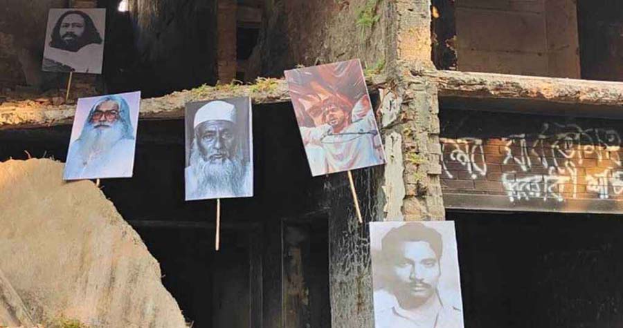 রাজধানীর ধানমন্ডি ৩২ নম্বরে অবস্থিত শেখ মুজিবুর রহমানের ভাঙা বাড়ির দেয়ালে এবার মাওলানা আবদুল হামিদ খান ভাসানী, সিরাজুল আলম খান, সিরাজ সিকদার এবং জুলাই গণঅভ্যুত্থানের নেতা শরীফ ওসমান হাদির ছবির পোশাক টাঙানো হয়েছে। এই উদ্যোগটি অন্যতম একটি স্মরণীয় কর্মসূচি হিসেবে নেওয়া হয়েছে।