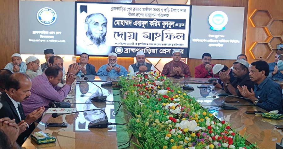 ব্রাহ্মণবাড়িয়ায় এবাদুল করিম বুলবুল স্মরণে দোয়া মাহফিল অনুষ্ঠিত