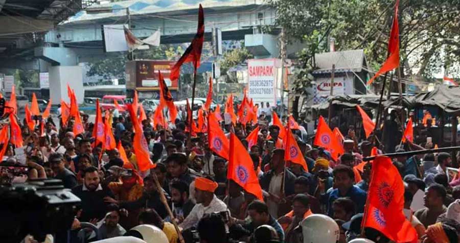 এখন কলকাতায় বাংলাদেশের ডেপুটি হাইকমিশনের সামনে হিন্দুত্ববাদীদের বিক্ষোভ উত্তপ্ত করে তুলেছে শহরের রাজপথ। মঙ্গলবার (২৩ ডিসেম্বর) সকালে ময়মনসিংহে দীপু চন্দ্র দাসের উপর হামলা করে তাকে হত্যার প্রতিবাদে বাংলাদেশের বিভিন্ন সংগঠনের উদ্যোগে এই বিক্ষোভের ডাক দেয়া হয়। বিক্ষোভকারীরা দূতাবাসের দিকে এগোতে থাকলে পুলিশের সঙ্গে দফায় দফায় সংঘর্ষের ঘটনা ঘটে। পরিস্থিতি নিয়ন্ত্রণের জন্য পুলিশ লাঠিচার্জ করতে বাধ্য হয়। বিবিসি বাংলার রিপোর্ট অনুযায়ী, সকাল ১১টার দিকে বিক্ষোভকারীরা দূতাবাসের দিকে এগোতে থাকলে পুলিশ তিন স্তরের ব্যারিকেড দিয়ে তাদের পথ বন্ধ করে দেয়। তবে উত্তেজিত জনতা প্রথম ব্যারিকেডটি ভেঙে সামনে ছুটে আসে। দ্বিতীয় ব্যারিকেড ভাঙানোর চেষ্টা করলে পুলিশ লাঠিপেটা করে বিক্ষোভকারীদের ছত্রভঙ্গ করে দেয়। বর্তমানে দূতাবাস থেকে প্রায় ১০০ মিটার দূরে বিক্ষোভকারীদের আটক করে রাখা হয়েছে। এই ঘটনার প্রভাবে কলকাতার বঙ্গবন্ধু সরণি এলাকায় পরিস্থিতি উদ্বেগজনক হয়ে উঠেছে। বিশাল পুলিশ মোতায়েন করা হয়েছে এবং জলকামান ছোড়া হয়েছে। বাংলাদেশের সংখ্যালঘু নির্যাতনের অভিযোগ তুলে বিক্ষোভকারীরা সেখানে দীর্ঘক্ষণ সুপ্রতিষ্ঠিত হয়ে স্লোগান দিয়ে যান। এর আগে শিলিগুড়িতে ভিসা কেন্দ্রে হামলার ঘটনার জের ধরে কলকাতায় এই বিক্ষোভের কারণে সেখানে সতর্কতামূলক ব্যবস্থা গ্রহণ করা হয়েছে। দূতাবাসের আশপাশের জায়গায় নিরাপত্তা আরও জোরদার করা হয়েছে। অন্যদিকে, মঙ্গলবার সকালে ঢাকায় নিযুক্ত ভারতের হাইকমিশনার প্রণয় ভার্মাকে তলব করে বাংলাদেশের পররাষ্ট্র মন্ত্রণালয়, নয়াদিল্লি এবং শিলিগুড়িতে বাংলাদেশের কূটনৈতিক সংস্থায় হামলা ও ভাঙচুরের ঘটনা কঠোর ভাষায় নিন্দা জানিয়েছে। পররাষ্ট্র মন্ত্রণালয়ের এক বিজ্ঞপ্তিতে জানানো হয়, বাংলাদেশ ২০ ডিসেম্বর নয়াদিল্লির বাংলাদেশ হাইকমিশনের বাইরে ঘটে যায় অনাকাঙ্ক্ষিত ঘটনা এবং ২২ ডিসেম্বর শিলিগুড়িতে ভিসা কেন্দ্রে উগ্রপন্থিদের হামলার ঘটনা নিয়ে গভীর উদ্বেগ প্রকাশ করে। বাংলাদেশের পক্ষ থেকে বলা হয়, এই ধরনের পরিকল্পিত সহিংসতা ও ভীতি প্রদর্শন কুটনৈতিক সম্পর্ককে বিঘ্নিত করে না শুধুমাত্র, বরং দুই দেশের পারস্পরিক শ্রদ্ধা এবং শান্তি ও সহনশীলতার মূল্যবোধকেও ক্ষতিগ্রস্ত করে।
