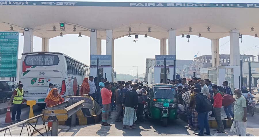 পটুয়াখালীর দুমকিতে পায়রা সেতুর টোল প্লাজায় এক বাসের ধাক্কায় টোলকর্মী সহিদুল ইসলাম (৪০) গুরুতর আহত হয়েছেন। এই দুর্ঘ্টনাটি ঘটেছে বুধবার (২৪ ডিসেম্বর) সকাল সাড়ে ১১টার দিকে, যখন ঢাকা-বাউফলগামী সাকুরা পরিবহন (বাস নম্বর ঢাকা মেট্রো-ব-১২-২৩০৩) পেরিয়ে যাওয়ার সময় টোল প্লাজায় দায়িত্ব পালনরত সহিদুলের ওপর ধাক্কা দেয়। প্রত্যক্ষদর্শীদের अनुसार, কিছুক্ষণ দাঁড়িয়ে ছিলেন এমন সময় বাসটি দ্রুত এগিয়ে এসে তাকে ধাক্কা দেয়। ফলে সহিদুল ছিটকে আইল্যান্ডের উপর পড়ে যান এবং গুরুতর আহত হয়ে অজ্ঞান হয়ে পড়েন। স্থানীয়রা দ্রুত তাকে উদ্ধার করে বরিশাল শের-ই-বাংলা মেডিকেল কলেজ হাসপাতালে ভর্তি করেন। কর্তব্যরত চিকিৎসকরা জানিয়েছেন, তার অবস্থা খুবই আশঙ্কাজনক। দুর্ঘটনার পর স্থানীয় বাস চালককে গণদোলাই দিয়ে আটক করে পুলিশে খবর দেয়। ঘটনাস্থলে পুলিশ এসে পরিস্থিতি নিয়ন্ত্রণে আনে, তবে তারা বাসটি খুঁজে পাচ্ছেন না। অন্যান্যদের কাছ থেকে জানা গেছে, ঘটনার পরে টোল প্লাজার কিছু মানুষ ১০ হাজার টাকা নিয়ে যান এবং গাড়ি থামিয়ে দেন। দুমকি থানার ইনচার্জ মো: সেলিম জানিয়েছেন, ঘটনা সম্পর্কে অভিযোগ এসেছে এবং তদন্ত করে ব্যবস্থা নেওয়া হবে। এই খবরটি এখন বেশ আলোচিত হচ্ছে।