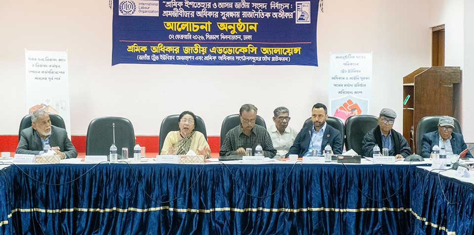 ত্রয়োদশ জাতীয় সংসদ নির্বাচন-২০২৬ উপলক্ষে রাজনৈতিক দলগুলোর ইশতেহারে শ্রমিক অধিকার সংক্রান্ত অঙ্গীকার বাস্তবায়ন নিশ্চিত করা ও জাতীয় পর্যায়ে শ্রমিক ইস্যুতে রাজনৈতিক অঙ্গীকার দৃঢ় করার লক্ষ্যে ‘শ্রমিক অধিকার জাতীয় এডভোকেসি এলায়েন্স’ সোমবার, ২ ফেব্রুয়ারি ২০২৬, রাজধানীর সিরডাপ মিলনায়তনে একটি আলোচনা আয়োজন করে। এ অনুষ্ঠানে শ্রম বিষয়ক একাডেমি, মিডিয়া ব্যক্তিত্ব, গবেষক ও বিভিন্ন জাতীয় ও আন্তর্জাতিক উন্নয়ন সহযোগী অংশ নেন। অনুষ্ঠানটি এলায়েন্স সচিবালয়, বাংলাদেশ ইনস্টিটিউট অব লেবার স্টাডিজ (বিলস) ও আন্তর্জাতিক শ্রম সংস্থা (আইএলও)-এর সহযোগিতায় অনুষ্ঠিত হয়।
